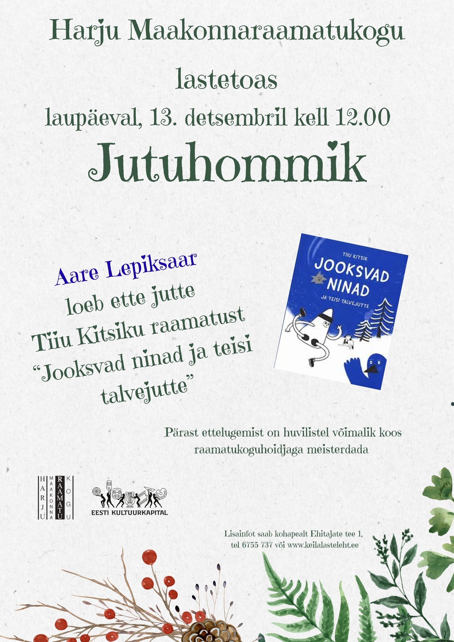 Jõulueelsel Jutuhommikul loeb Aare Lepiksaar ette jutte Tiiu Kitsiku uuest raamatust “Jooksvad ninad ja teisi talvejutte”.