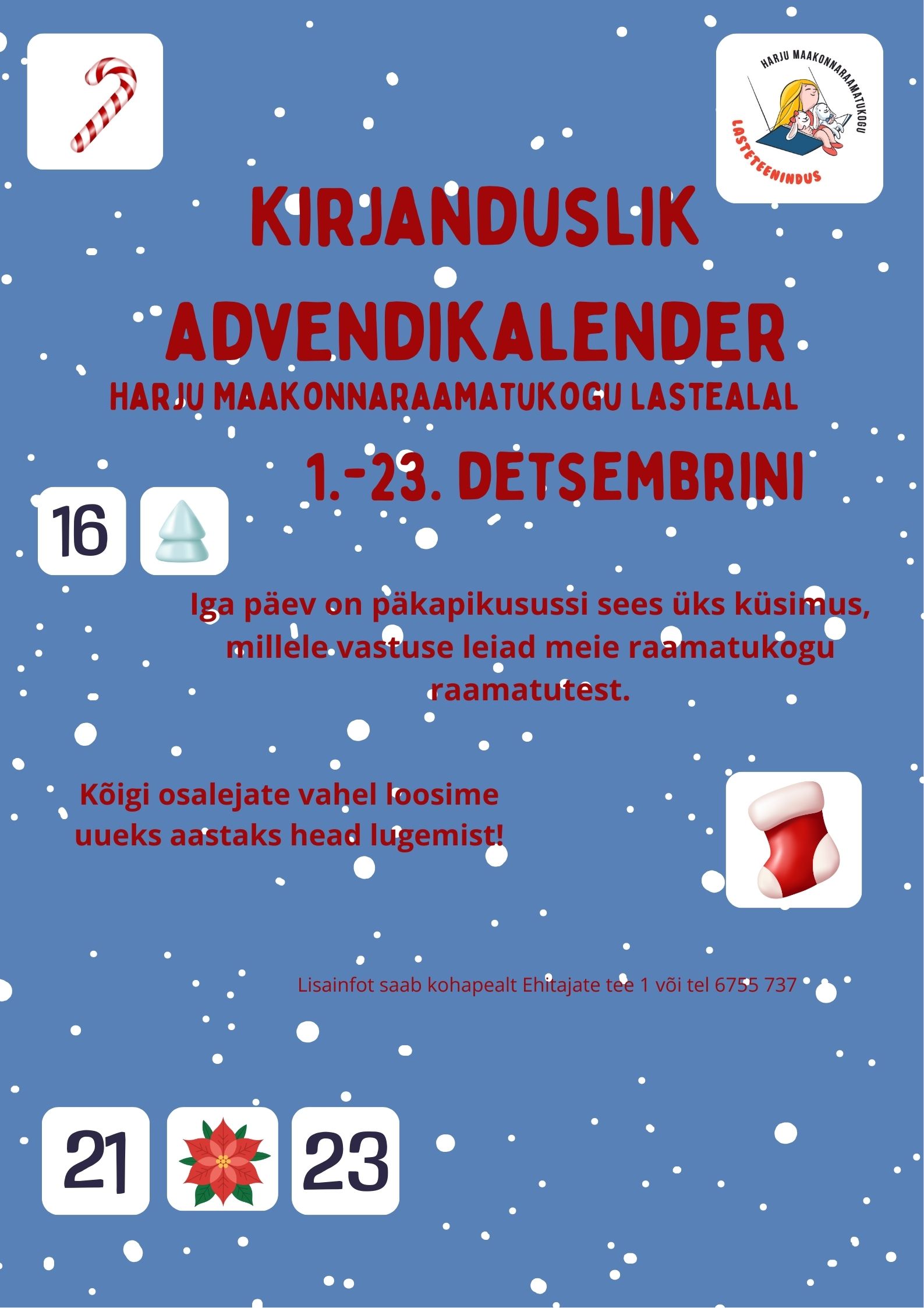 Meie raamatukogu lastealal avanes tänasest kirjanduslik advendikalender. 🧑‍🎄Iga päev on päkapikusussi seest üks küsimus, millele vastuse leiad raamatukogu raamatutest.📖