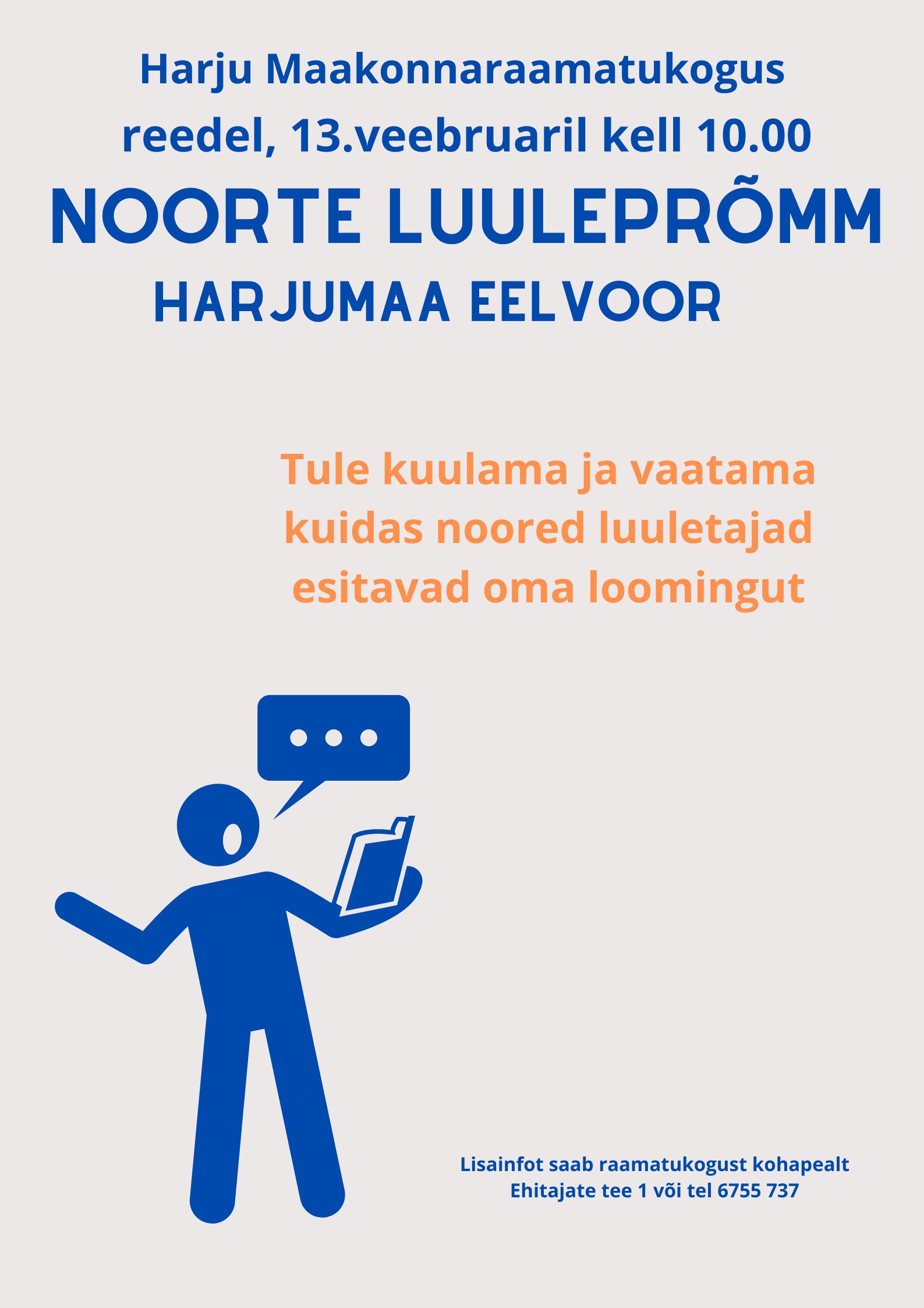13. veebruaril algusega kell 10.00 toimub meie raamatukogus vabariikliku noorte Luuleprõmmu Harjumaa eelvoor.